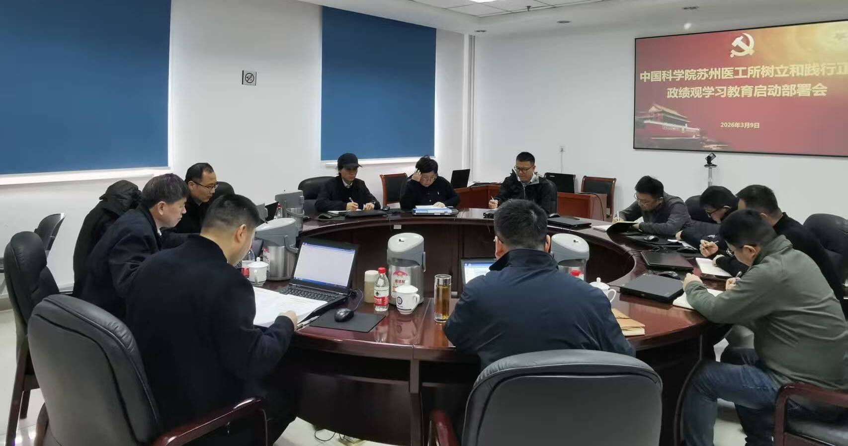 3月9日,中国科学院苏州生物医学工程技术研究所召开树立和践行正确政绩观学习教育启动部署会。研究所领导班子成员、党委委员、各职能部门负责人参加会议。研究所党委书记、所长吴成铁主持会议。 会议学习了习近平总书记关于树立和践行正确政绩观学习教育的重要讲话和重要指示精神,传达了中共中央办公厅《关于在全党开展树立和践行正确政绩观学习教育的通知》精神以及院党组关于学习教育的相关部署,研究了苏州医工所开展学习教育的具体举措和工作安排。 会议强调,开展树立和践行正确政绩观学习教育,要切实把思想和行动统一到党中央决策部署及院党组工作要求上来。一要筑牢思想根基,在“学”字上下功夫,要原原本本学习习近平总书记关于树立和践行正确政绩观的重要论述,将其与学习贯彻习近平总书记关于科技创新的重要论述和对中国科学院的重要指示批示精神结合起来,深刻领会核心要义,准确把握研究所使命定位;二要坚持问题导向,在“查”字上动真格,要精准对照检视,重点查摆制约抢占科技制高点核心任务顺利实施的突出问题,深入剖析在聚焦主责主业、落实“三项制度”等方面存在的短板不足,真正把问题找准找实;三要突出实干实效,在“改”字上见真章,要结合巡视整改落实、“十五五”规划编制实施等重点工作,对查摆出的问题坚决整治,要注重建章立制,着力构建长效机制,切实将学习教育成果转化为加快抢占生物医学工程领域科技制高点、实现高水平科技自立自强的强大动力。 会议还传达学习了院党组第六轮巡视发现的突出问题整治文件精神。