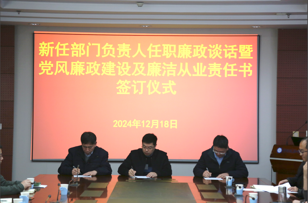 报告结束后,开展了党风廉政建设及廉洁从业责任书签订仪式。党委书记、所长和领导班子其他成员签订了《党风廉政建设及廉洁从业责任书》,同时要求逐级签订责任书,落实主体责任、履行“一岗双责”要求。