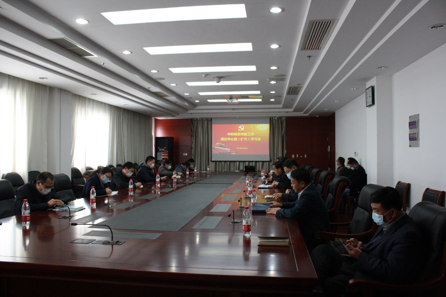 4月1日,中科院苏州医工所举行党委理论学习中心组会议,开展全面从严治党专题学习,并结合习近平总书记关于防控新冠肺炎疫情系列讲话和重要指示批示精神进行深入研讨。会议由党委书记杨洪波主持,党委委员、纪委委员、各党支部书记等20多人参加会议。