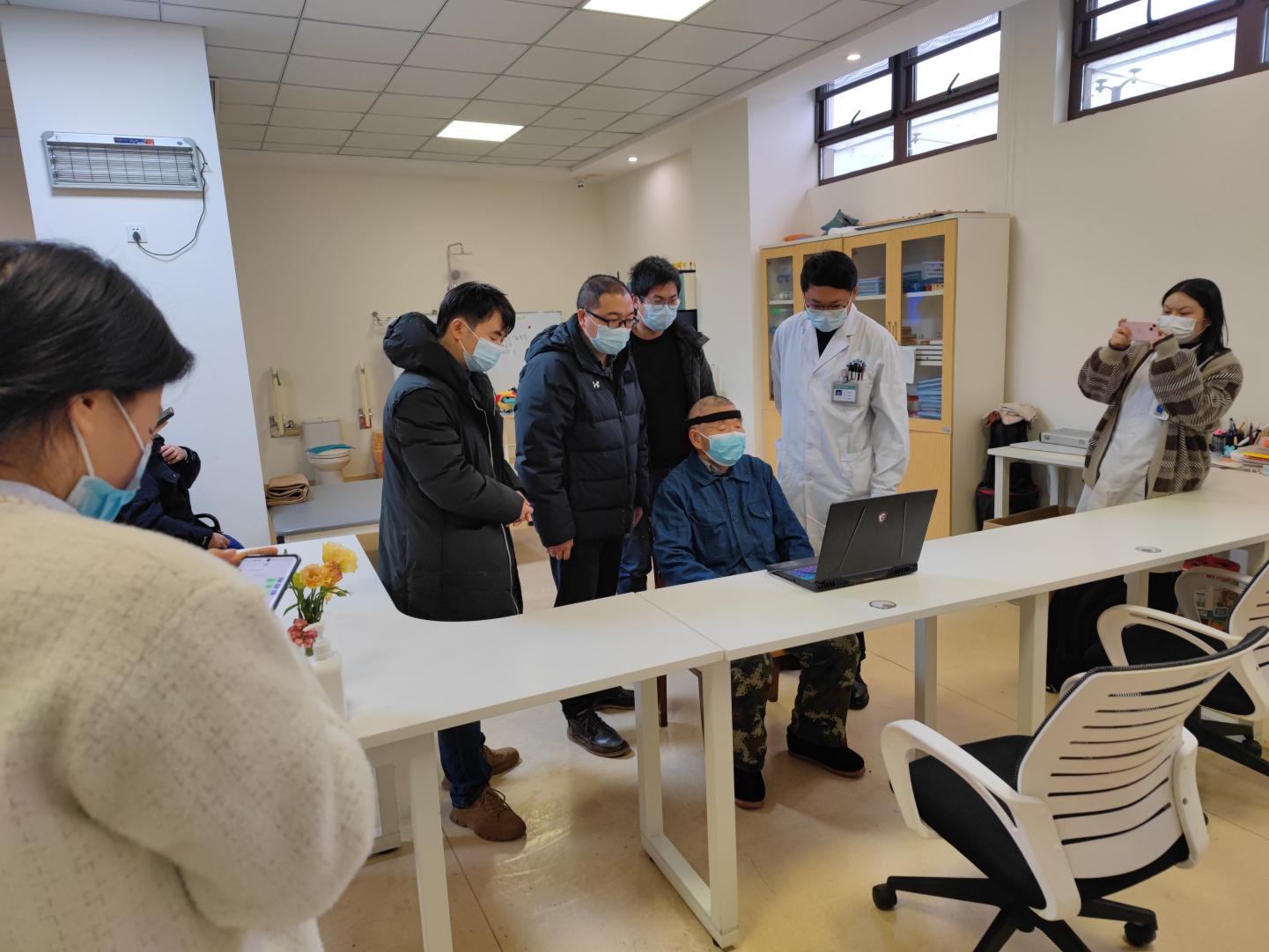 12月2日下午,在苏州医工所康复室党支部的组织下,江苏省人民医院康复科专家、溧阳京华康复医院、溧阳京华护理院有关专家与一线护理工作者相聚溧阳京华康复医院,共同探讨了康复室成贤锴研究员的虚拟现实智慧康养技术进展,并着重讨论了脑机接口技术与虚拟现实相结合在老年认知能力评估与干预系统开发中的应用。江苏省人民医院康复科钱开林医生亲自体验了原理样机系统,溧阳京华康复医院杜东升院长从不同老年群体中交互实际存在的问题提出了建议,溧阳京华康复医院陈颖院长现场组织了多位老人的实际应用测试,让住院老人病人体验了高科技产品的趣味性,几位老人分别体验了视觉刺激脑电波意图识别交互游戏以及眼动交互娱乐康养游戏,康复室的技术人员在实践中检验了自己的技术水平与成熟度,体现了以需求为牵引的工作原则,现场发现问题解决问题,康复室的技术人员也表示,通过现场应用,惊喜发现老年人对测试过程如此的配合,我们深刻感受到老年人对新技术如此的期待,“医工护”相结合路线,让我们的工作方向更明确,让我们的工作更有温度,也希望各方共同努力,期望取得更好的成绩。
