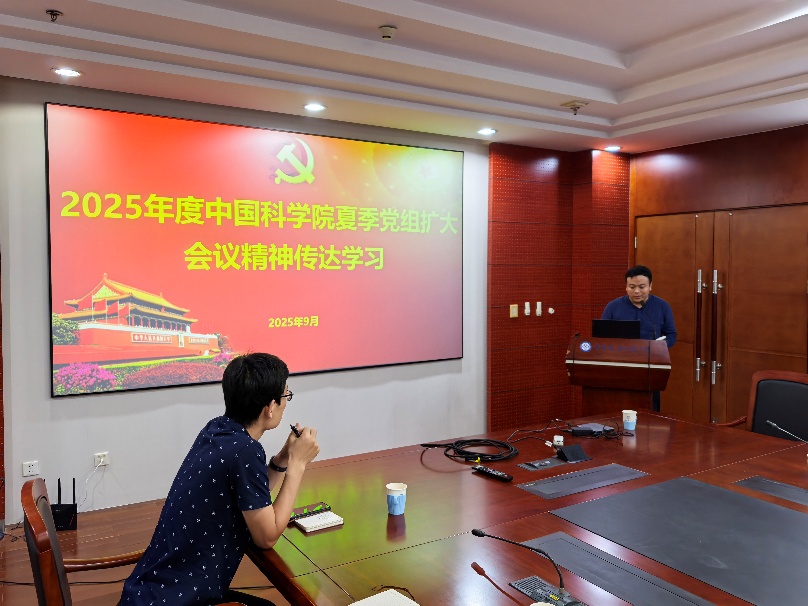 随后,李天同志向与会党员传达了中国科学院2025年夏季党组扩大会议精神,重点解读了习近平总书记重要讲话精神和党中央、国务院部署要求,介绍了中国科学院贯彻落实“ 新三定”精神和全院重点工作开展情况。