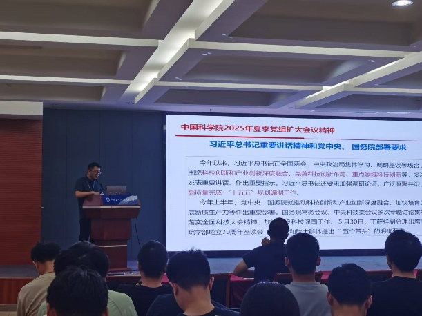 2025年9月8日,研究生第一、二、三党支部与光学室党支部联合召开支部大会开展8月—9月份党日活动,主题为“学习中国科学院2025年夏季党组扩大会议精神”。