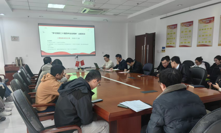 11月28日,工程装备集成研究室党支部在A3-312会议室组织开展“学习党的二十届四中全会精神”主题党日活动,活动内容包括学习党的二十届四中全会精神并观看中共中央新闻发布会解读视频、围绕专业领域方向开展“十五五”规划研讨、观看安全教育视频。会议由党支部书记孙海旋同志主持,工程装备室全体党员参加。