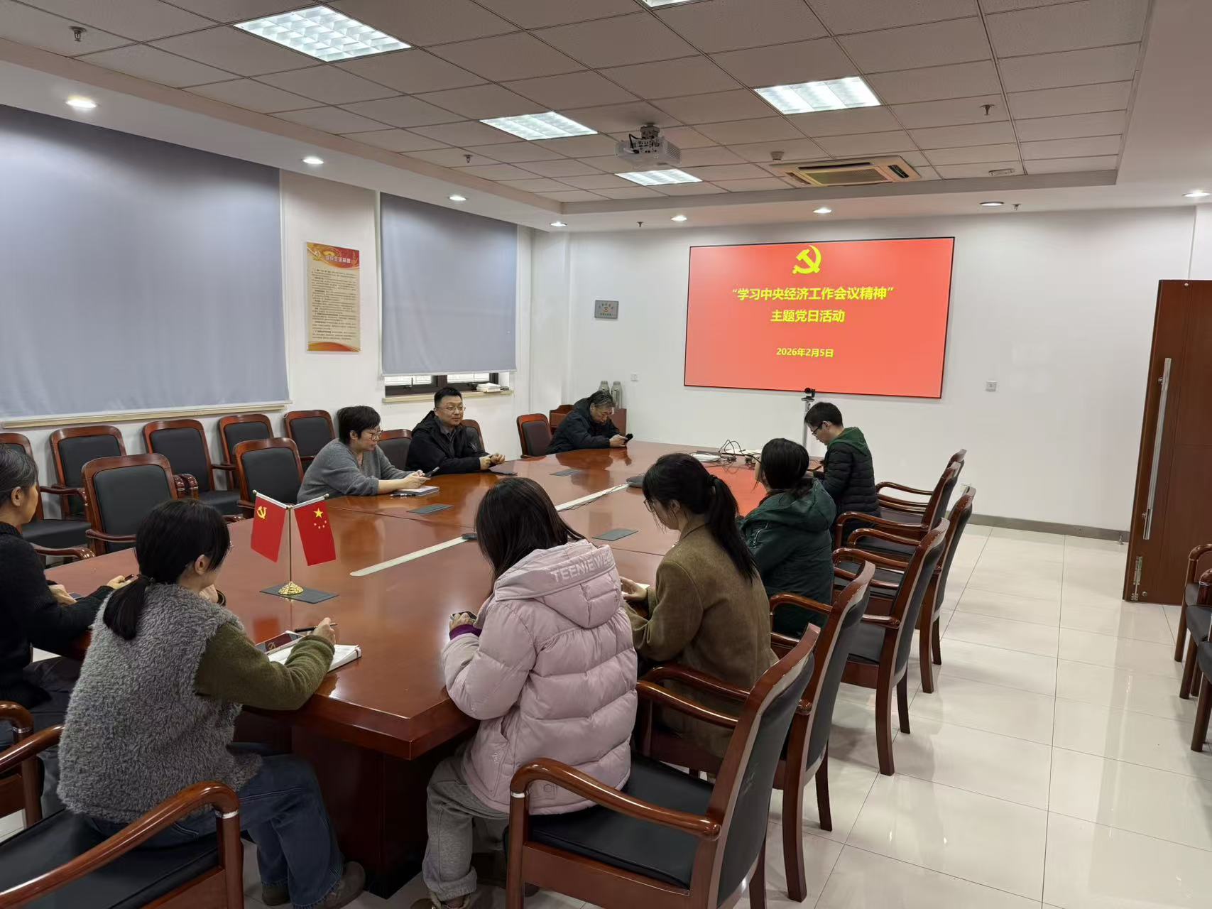 为深入贯彻落实党的最新决策部署,准确把握新时代经济工作方向,2月5日,职能部门第二党支部以“学习中央经济工作会议精神”为主题召开党日活动,集中学习中央经济工作会议精神,并结合工作实际研讨落实举措。会议由宣传委员张丽主持。 首先,由党支部书记王昇带领全体党员原原本本学习了中央经济工作会议精神,全面传达中央经济工作会议对2025年经济工作的回顾总结、当前经济形势的深刻分析,以及2026年经济工作的战略部署。会议重点围绕四个“政策取向”——坚持稳中求进、提质增效、继续实施更加积极的财政政策、继续实施适度宽松的货币政策、增强宏观政策取向一致性和有效性,以及五个“关键着力点”展开深入解读,并结合苏州市经济工作会议精神,提出要以创新驱动为战略引擎,加速培育新质生产力,促进科技创新与产业创新深度融合,为“十五五”开好局、起好步打下坚实的基础。 随后,由组织委员张巍同志带领全体党员学习“习近平在二十届中央纪委五次全会上发表的重要讲话”,重点解读了习近平总书记关于“以更高标准、更实举措推进全面从严治党”“更加清醒坚定地推进反腐败斗争”等重要论述。强调全体党员干部要增强政治责任感、历史使命感, 始终严守政治纪律和政治规矩,在服务发展大局中锤炼忠诚干净担当的政治品格。参会党员纷纷表示,将以此次学习为契机,进一步增强廉洁自律意识,筑牢拒腐防变的思想防线。 接下来,全体党员共同观看了专题节目《榜样10》, 通过大屏幕沉浸式学习新时代共产党员的先进事迹。 活动最后,黄逸晨同志系统宣贯档案管理工作要求,并就档案管理规范化、流程化提出具体要求。