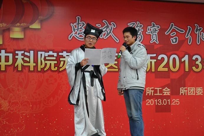 金龙腾飞辞旧岁,银蛇起舞迎新春。1月25日下午,由所工会、所团委主办的主题为“忠诚、务实、合作、创新”的2013年新春联谊会在701报告厅举行。全所职工和在学研究生200多人欢聚一堂,辞旧迎新。