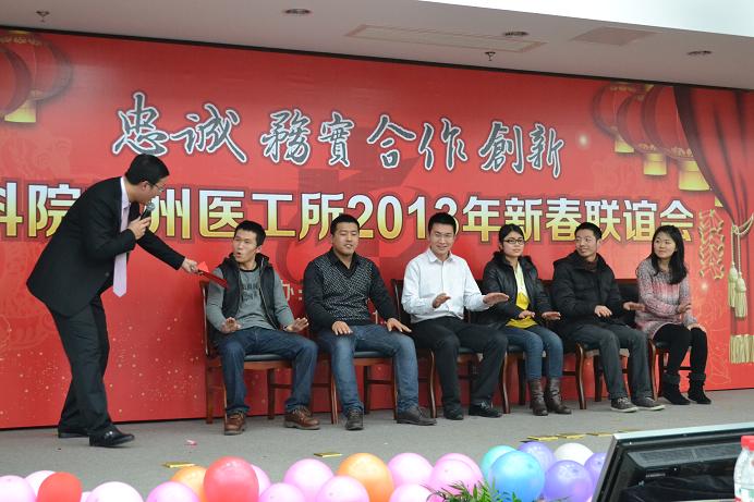 在持续两个小时的联谊会上,所职工和研究生自编自演了歌曲、相声、小品、三句半、舞蹈、快板、诗朗诵、哑剧等多种文艺形式的节目。其中,由影像室王骁冠、常严、徐雅洁、张广才表演的《三句半》用诙谐幽默的语言回顾了2012年国内外发生的大事,用生动活泼的话语展示了苏州医工所科研人员奋力创新、刻苦钻研的工作状态;由管理部门肖心通、郭智慧、徐振华表演的诗朗诵《展筹建风采谱医工新篇》用诗一般美妙的词句和满腔的热情抒发了医工人“创新生物医学工程,服务人民健康幸福”和“汇聚生物医学英才,谱写医工发展华章”的赤子之心;由尹焕才、刘广兴表演的快板《医工所那些事》描绘了年轻职工眼中苏州医工所走过的难忘而辉煌的筹建历程,表达了年轻一代敢为人先的决心和气魄。这些原创的节目展现了医工人团结创新完成筹建工作的开拓精神和对美好未来的雄心壮志,受到了广泛好评。所长唐玉国,党委书记、副所长邓强也在联谊会上表演了精彩的节目。联谊会现场气氛热烈、喜庆祥和,既展示了医工人的多才多艺,也彰显了本所创新融合的文化氛围。