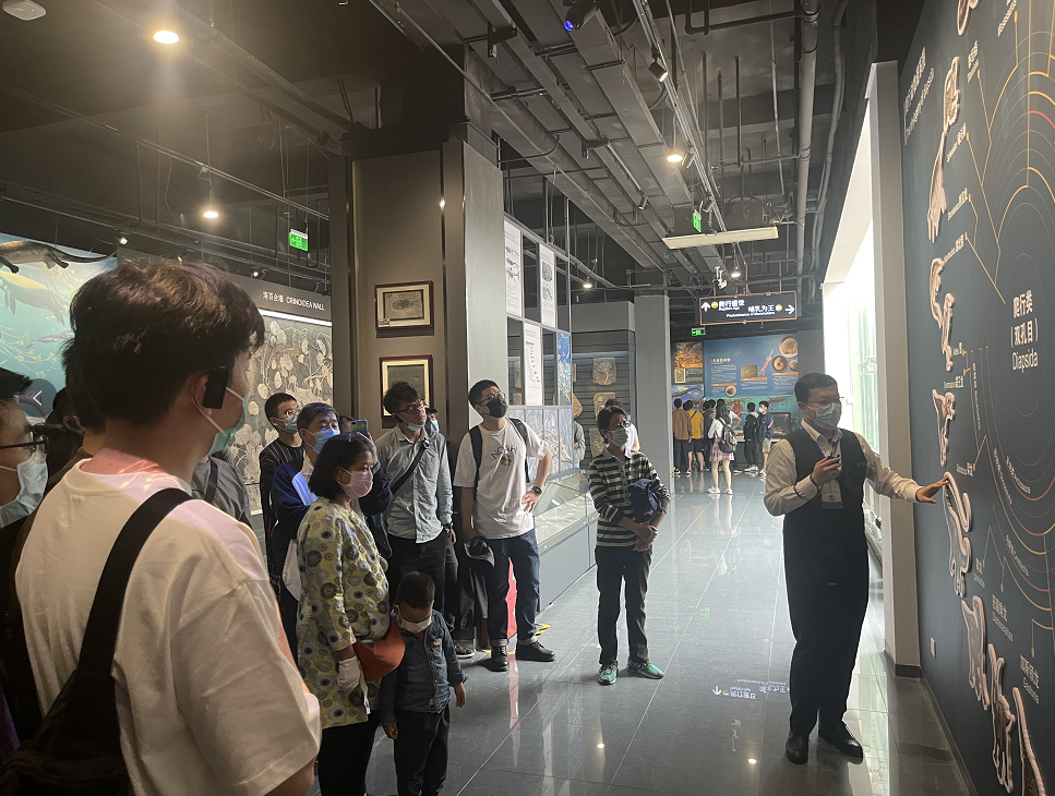 在兄弟院所的热情帮助下,大家首先来到了南京古生物博物馆,参观了博物馆各种精美的古生物化石标本,包括古无脊椎动物、古植物和微体古生物。博物馆藏品丰富,展品精美,其中尤以“澄江动物群”和包括“中华龙鸟” 在内的“热河生物群”化石标本最为珍贵,堪称国宝级的化石精品。