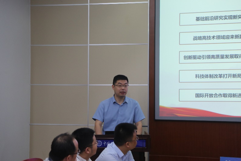 首先,吴成铁书记带领大家学习了习近平总书记重要讲话精神。吴书记表示,习近平总书记的重要讲话充分肯定了近年来我国科技创新发展取得的历史性成就,总结了做好科技创新工作“八个坚持”的重要经验,分析了新时期科技创新的新形势新特点,系统阐明了新形势下加快建设科技强国的基本内涵和主要任务,为新时代科技工作提供了根本遵循和行动指南。