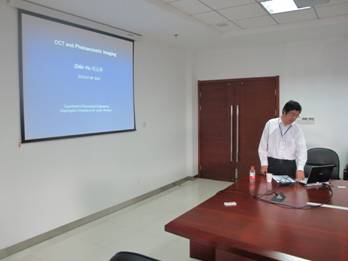 学术报告会由王守岩研究员主持,他首先介绍了胡博士的学术背景与研究领域,之后,胡博士做了题为“OCT and Photonics image devices in clinical diagnosis(临床诊断中的光学相干断层扫描和光子成像设备)”的报告,并与本所科研工作者就报告涉及的相关领域及科研方法等问题进行了深入的讨论。我所医学影像室、医用光谱室、医用激光室和联合研究部等研究部门的科研人员与科研开发处等管理部门人员参加了这次学术报告。