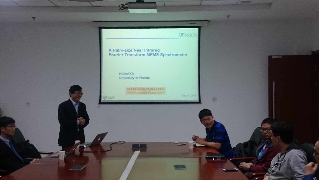5月13日上午,中科院“海外评审”专家、美国佛罗里达大学谢会开教授到苏州医工所交流访问,并做题为“用于近红外光谱测试的MEMS傅里叶光谱仪技术”的学术报告。