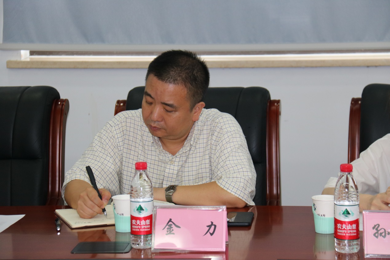 金力院士在听取并记录医工结合项目进展汇报