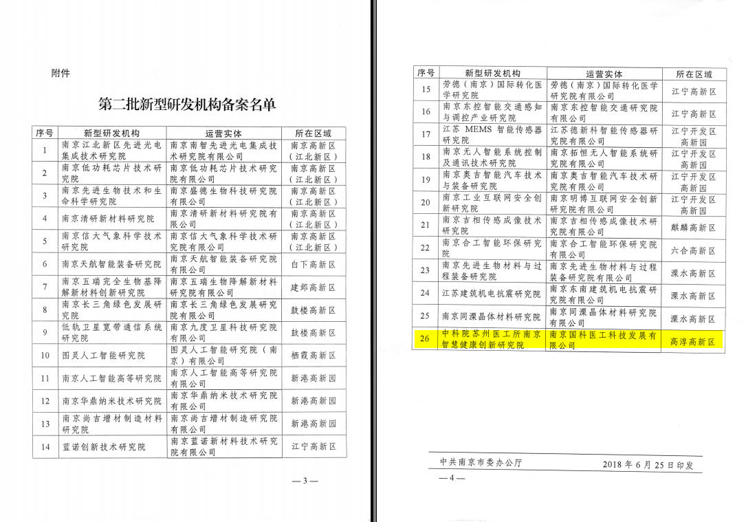 近日,我所南京分支机构南京智慧健康创新研究院通过南京市第二批新型研发机构备案。本次备案申报工作,由高淳高新区推荐,南京市科委、南京市“两落地、一融合”推进办公室、江苏省产业技术研究院联合对申请机构进行材料审核和现场评估,高淳高新区仅南京智慧健康创新研究院一家机构上榜。