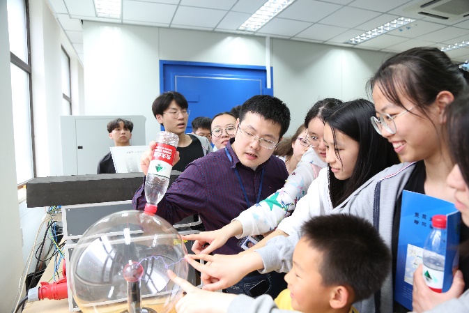 在虚拟现实实验区,通过五面CAVE系统、3D认知障碍康复训练系统、VR头显的原理讲解和体验,大家对虚拟现实技术有了初步了解,并感受了立体视觉和人机交互带来的新鲜感和趣味性;在三维运动捕捉实验区,科研人员对人体运动进行三维动作捕捉及建模显示,并让大家体验了外骨骼系统、智能康复手套等康复工程领域的研究成果;在可穿戴多生理实验区,科研人员介绍了人体多生理参数的基本构成以及各生理参数与人健康状态的对应关系,展示了多生理参数智能衣、单导心电贴等智能可穿戴设备;在智慧睡眠监护实验区,科研人员展示非接触式睡眠监护系统的使用,让大家感受到新型技术在无干扰睡眠监护领域的应用;在电磁兼容实验区,科研人员展示了电磁兼容检测仪器与用途,大家还感受了人造闪电,并进入屏蔽室体验了隔离手机信号,感受到电磁波的魅力。