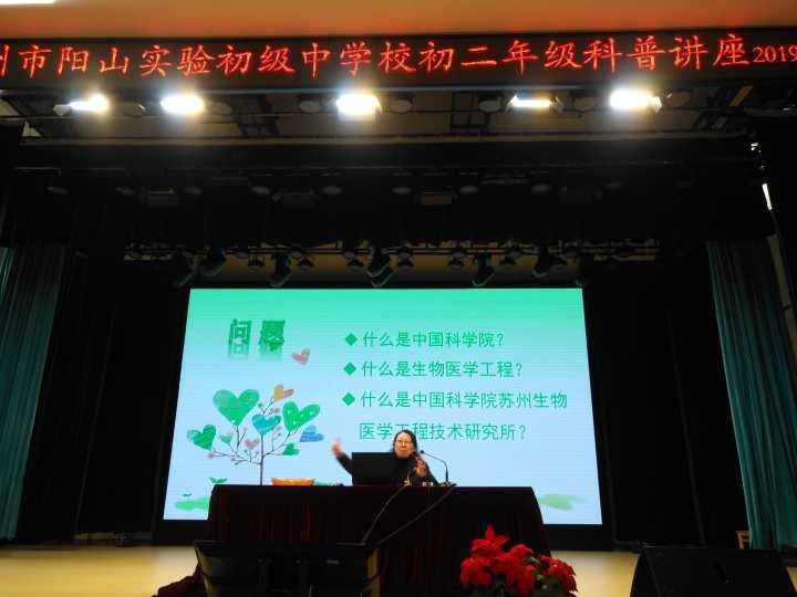 2019年1月23日,受阳山实验初级中学邀请,声学室崔崤峣研究员在学校报告厅,向初二同学开展了生物医学工程科普讲座。阳山实验中学的600余名师生参加了本次讲座。