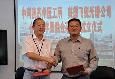 苏州医工所管理部门负责人、美国飞锐光谱公司项目负责人参加了合作签字仪式。