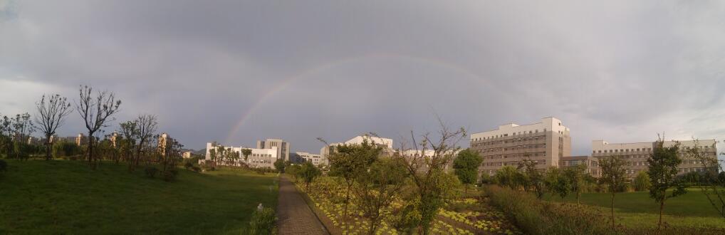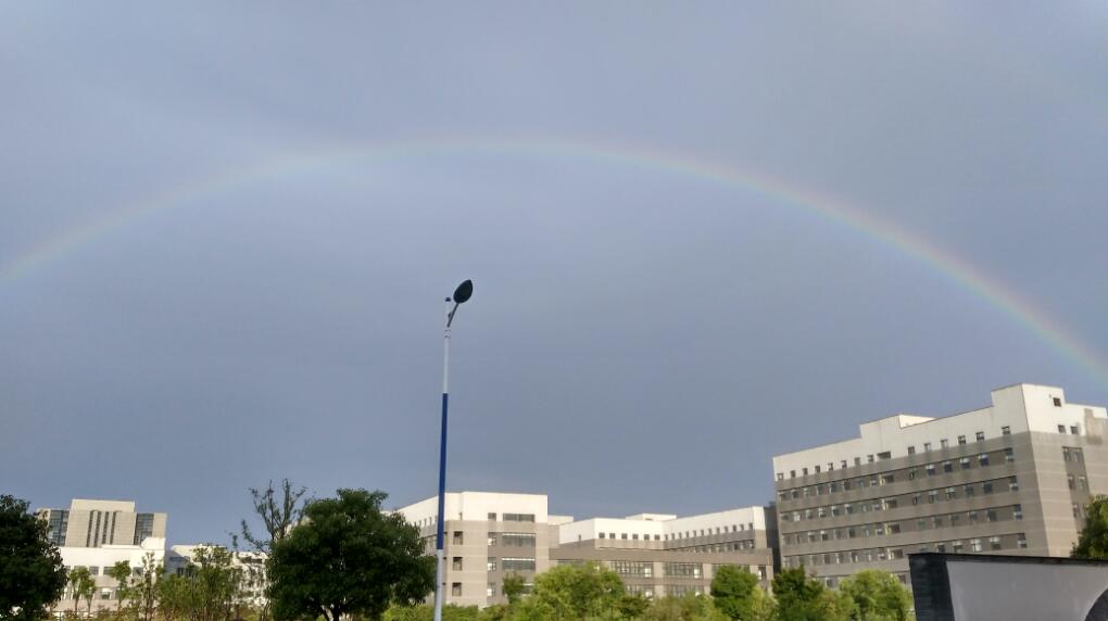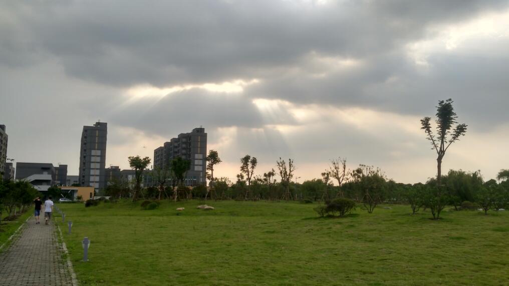 楼及餐厅附近,看到万丈光芒穿透乌云不禁让人想到