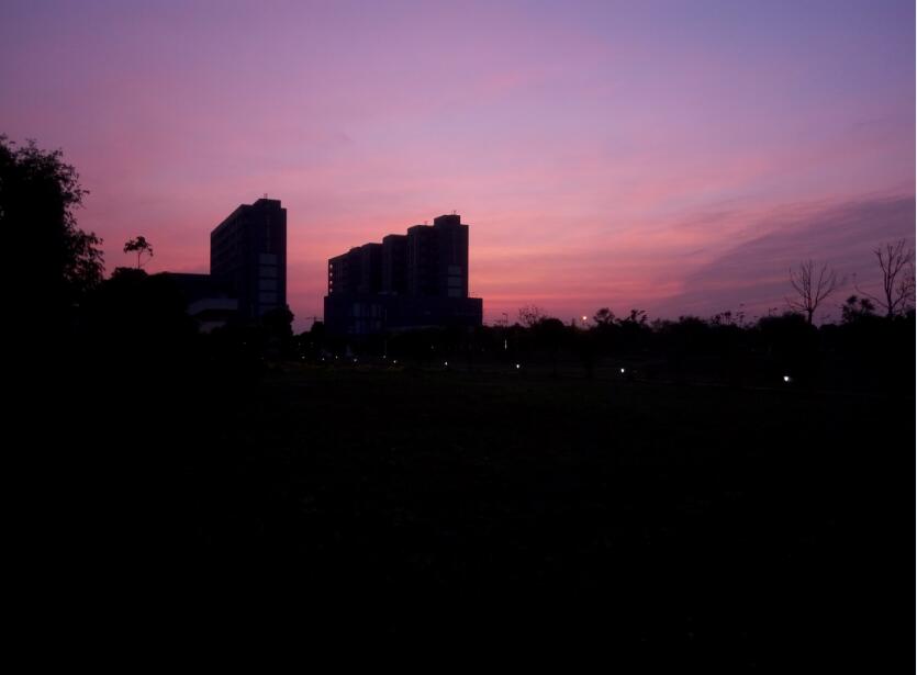 楼和食堂之间的小路上。展现了不同时期这段路上的风景。蓝天,白云,彩霞、青草地,树木以及宿舍楼交相辉映,构成一幅幅令人心旷神怡的美景,同时也展现了非常舒适宁静的医工生活情景。