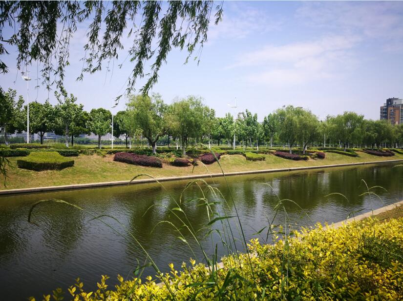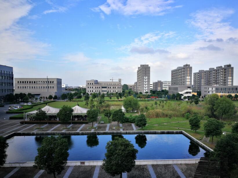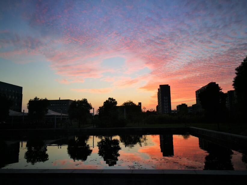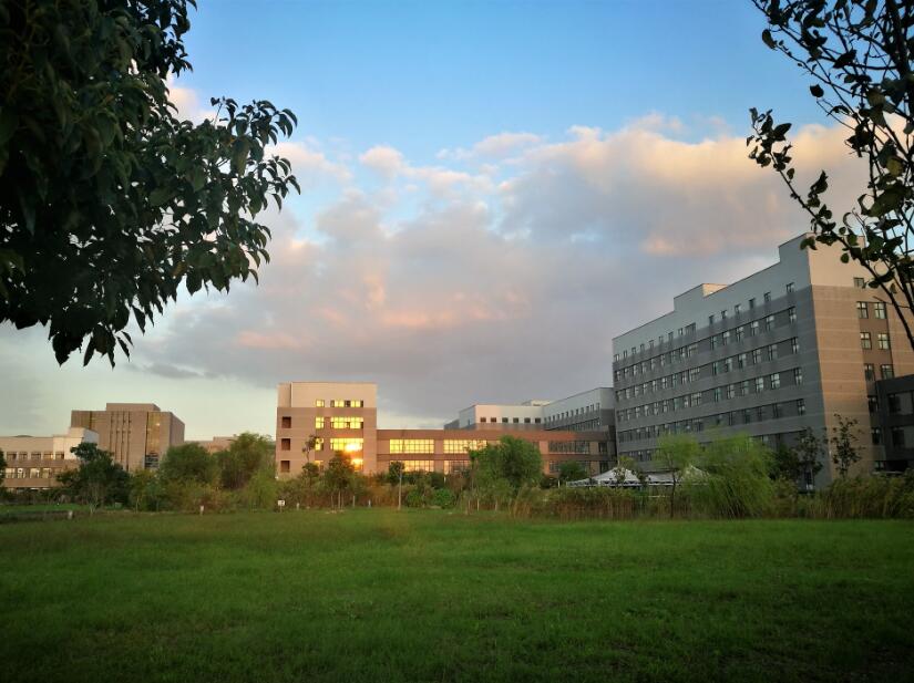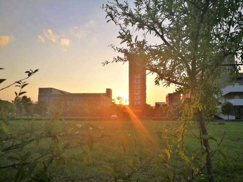 远望落日映照下静谧的医工所园区