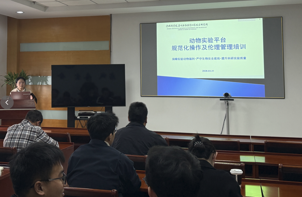 为进一步加强动物实验平台的规范化管理,保障动物实验数据的科学性与准确性,切实维护实验动物福利与伦理,同时提升实验人员的安全合规意识,苏州医工所动物实验平台于2026年3月31日下午在A3-707会议室举办了“动物实验平台规范化操作及伦理管理”专题培训。本次培训由动物实验平台管理员宋雪艳担任主讲,来自所内多个课题组的33名学生及科研助理参加了培训。