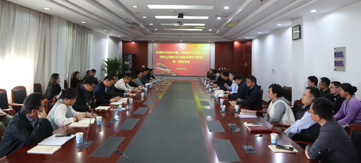 4月2日,苏州医工所召开理论学习中心组(扩大)学习会暨树立和践行正确政绩观学习教育第一期读书班,深入学习领会习近平总书记关于树立和践行正确政绩观的重要论述。所领导班子成员、党委委员、纪委委员、所务委员、党支部书记、研究室主任、职能部门负责人、青年理论学习小组成员等近40人参加会议。会议由党委书记、所长吴成铁主持。