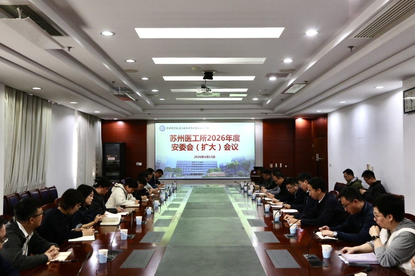 为深入贯彻总体国家安全观,落实中国科学院及江苏省、苏州市相关安全工作部署,筑牢科技创新安全屏障,4月15日上午,苏州医工所召开2026年度安委会(扩大)会议,安委会全体成员、各研究室主任及支部书记、各职能部门正副职等近30人参会。会议由纪委书记李鹏飞主持。